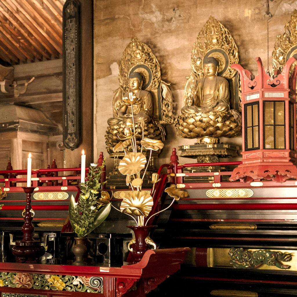 Les hôtes en quête de recueillement peuvent accéder au temple Sennyu-ji, historiquement lié à la famille impériale. Ils y découvrent l’Ajikan, une forme de méditation bouddhiste Shingon fondée sur la respiration, la visualisation et la conscience du corps.