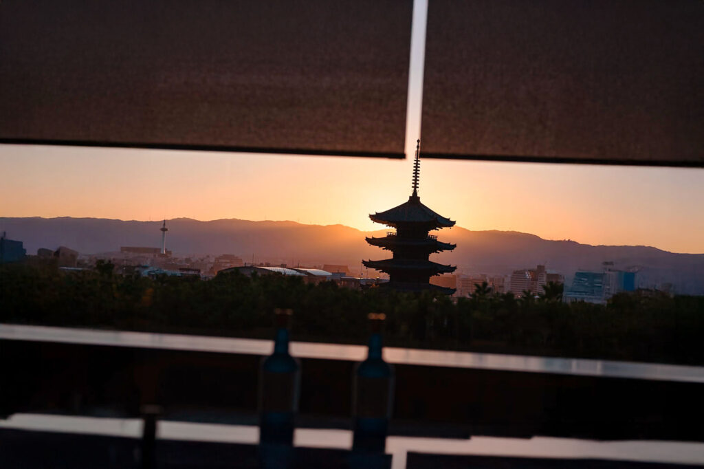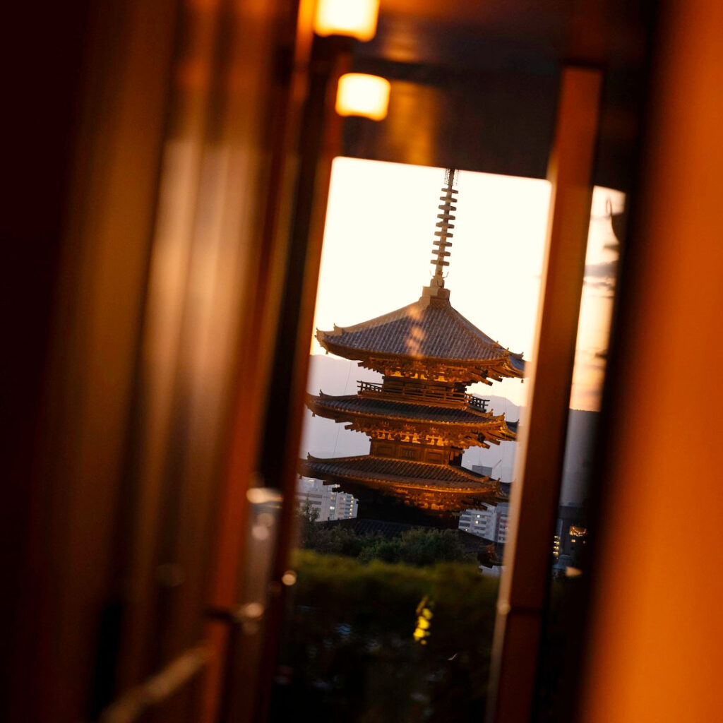 Le séjour s’achève là où il a commencé, sur les hauteurs d’Higashiyama, face aux toits alignés et à la pagode de Yasaka. Un lieu à l’écart du tumulte, où l’on ne découvre pas seulement un hôtel, mais une manière d’habiter Kyoto autrement.